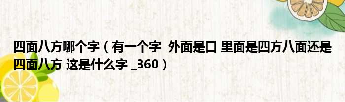 导读 大家好,今天小六子来为大家解答以下的问题,关于四面八方哪个字,有一个字 外面是口 里面是四方八面还是四面八方 这是什么字 _360这