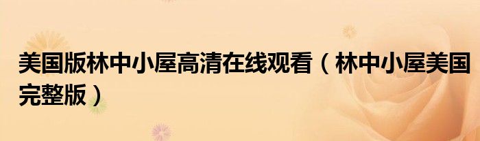 导读 大家好,今天小六子来为大家解答以下的问题,关于美国版林中小屋高清在线观看,林中小屋美国完整版这个很多人还不知道,现在让我们一起来看