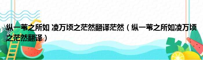 纵一苇之所如 凌万顷之茫然翻译茫然(纵一苇之所如凌万顷之茫然翻译)