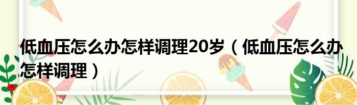 低血压怎么办怎样调理20岁(低血压怎么办怎样调理)