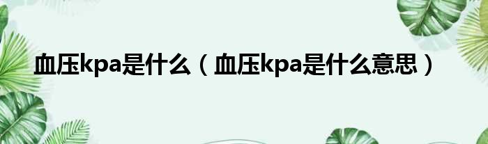 导读 大家好,乐天来为大家解答以下的问题,血压kpa是什么,血压kpa是什么意思很多人还不知道,现在让我们一起来看看吧!1、血压kPa是指血压测量