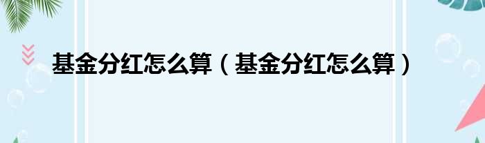 基金分红怎么算(基金分红怎么算)