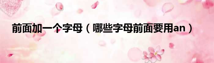 导读 大家好,今天小六子来为大家解答以下的问题,关于前面加一个字母,哪些字母前面要用an这个很多人还不知道,现在让我们一起来看看吧!1、an