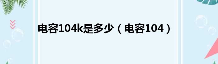 大家好,今天小六子来为大家解答以下的问题,关于电容104k是多少,电容104这个很多人还不知道,现在让我们一起来看看吧!