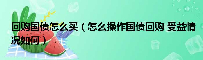回购国债怎么买(怎么操作国债回购 受益情况如何)