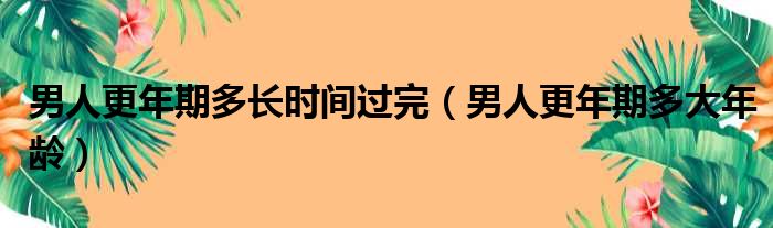 导读 大家好,乐天来为大家解答以下的问题,男人更年期多长时间过完,男人更年期多大年龄很多人还不知道,现在让我们一起来看看吧!1、男性更年