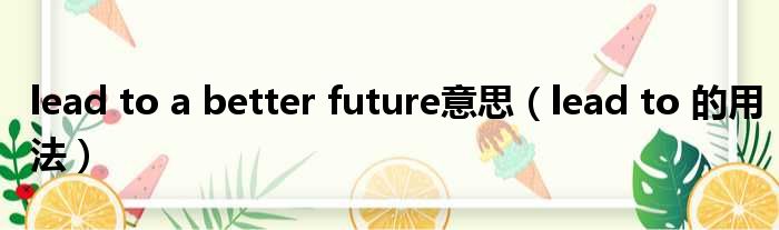 大家好,今天小六子来为大家解答以下的问题,关于lead to a better future意思,lead to 的用法这个很多人还不知道,现在让我们一起来看看吧!