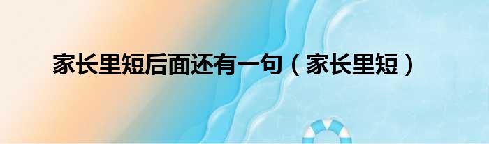 大家好,今天小六子来为大家解答以下的问题,关于家长里短后面还有一句,家长里短这个很多人还不知道,现在让我们一起来看看吧!
