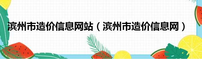 滨州市造价信息网站(滨州市造价信息网)