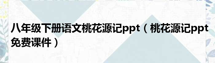 大家好,今天小六子来为大家解答以下的问题,关于八年级下册语文桃花源记ppt,桃花源记ppt免费课件这个很多人还不知道,现在让我们一起来看看吧!
