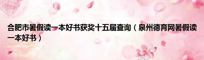 合肥市暑假读一本好书获奖十五届查询(泉州德育网暑假读一本好书)