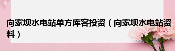 向家坝水电站单方库容投资(向家坝水电站资料)