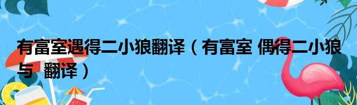 大家好,今天小六子来为大家解答以下的问题,关于有富室遇得二小狼翻译,有富室 偶得二小狼 与 翻译这个很多人还不知道,现在让我们一起来看看吧!