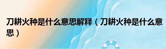 刀耕火种是什么意思解释(刀耕火种是什么意思)
