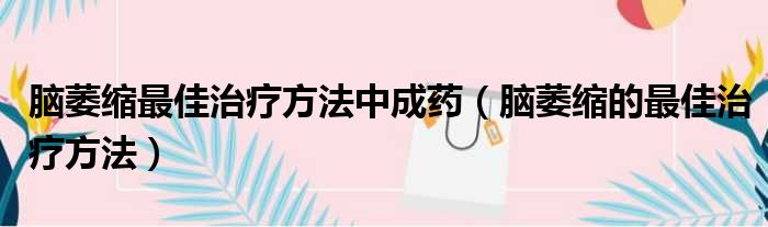 脑萎缩最佳治疗方法中成药(脑萎缩的最佳治疗方法)