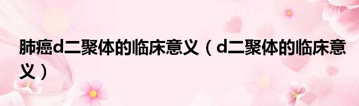 肺癌d二聚体的临床意义(d二聚体的临床意义)