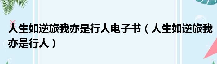 人生如逆旅我亦是行人电子书(人生如逆旅我亦是行人)