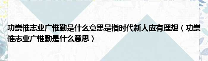 功崇惟志业广惟勤是什么意思是指时代新人应有理想(功崇惟志业广惟勤是什么意思)