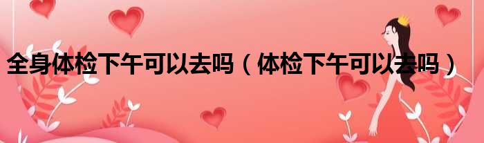 大家好,乐天来为大家解答以下的问题,全身体检下午可以去吗,体检下午可以去吗很多人还不知道,现在让我们一起来看看吧!