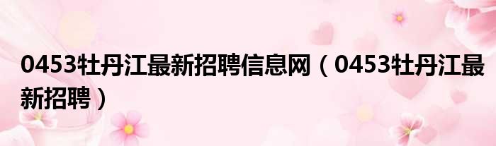 0453牡丹江最新招聘信息网(0453牡丹江最新招聘)
