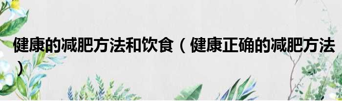健康的减肥方法和饮食(健康正确的减肥方法)