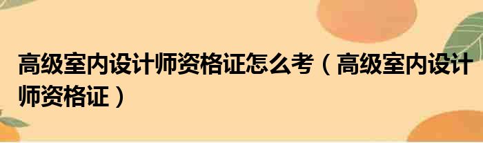 高级室内设计师资格证怎么考(高级室内设计师资格证)
