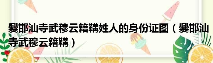 大家好,今天小六子来为大家解答以下的问题,关于爨邯汕寺武穆云籍鞲姓人的身份证图,爨邯汕寺武穆云籍鞲这个很多人还不知道,现在让我们一起来看看吧!