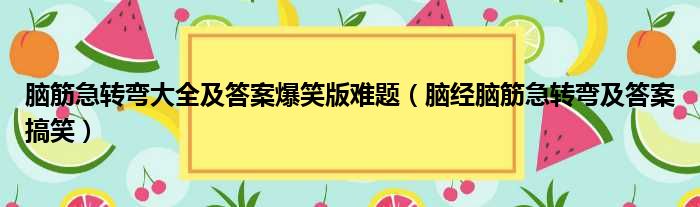 脑筋急转弯大全及答案爆笑版难题(脑经脑筋急转弯及答案搞笑)