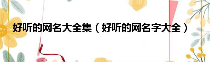 好听的网名大全集(好听的网名字大全)