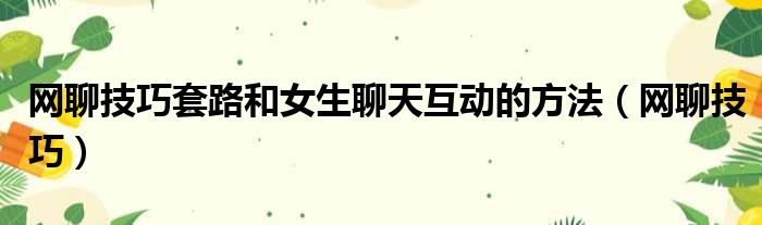 网聊技巧套路和女生聊天互动的方法(网聊技巧)