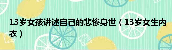 13岁女孩讲述自己的悲惨身世(13岁女生内衣)