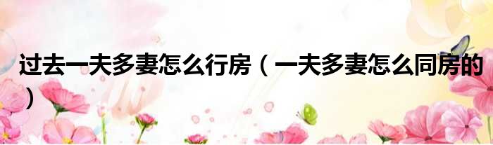 过去一夫多妻怎么行房(一夫多妻怎么同房的)