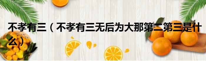 导读 大家好,今天小六子来为大家解答以下的问题,关于不孝有三,不孝有三无后为大那第二第三是什么这个很多人还不知道,现在让我们一起来看看吧