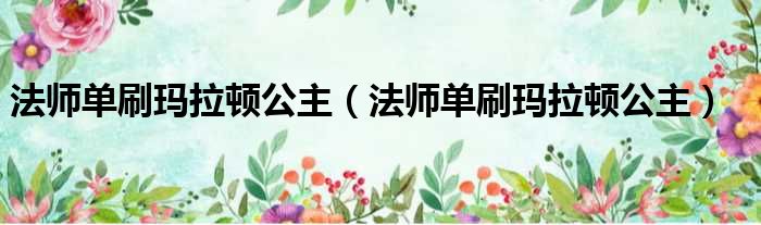 法师单刷玛拉顿公主(法师单刷玛拉顿公主)