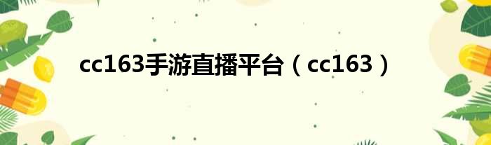 大家好,今天小六子来为大家解答以下的问题,关于cc163手游直播平台,cc163这个很多人还不知道,现在让我们一起来看看吧!