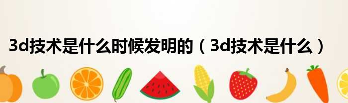 导读 大家好,今天小六子来为大家解答以下的问题,关于3d技术是什么时候发明的,3d技术是什么这个很多人还不知道,现在让我们一起来看看吧!1、目