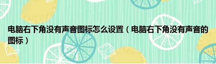 电脑右下角没有声音图标怎么设置(电脑右下角没有声音的图标)