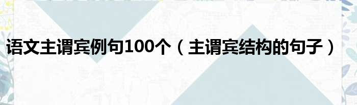 导读 大家好,今天小六子来为大家解答以下的问题,关于语文主谓宾例句100个,主谓宾结构的句子这个很多人还不知道,现在让我们一起来看看吧!1、i