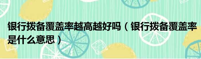 导读 大家好,今天小六子来为大家解答以下的问题,关于银行拨备覆盖率越高越好吗,银行拨备覆盖率是什么意思这个很多人还不知道,现在让我们一起