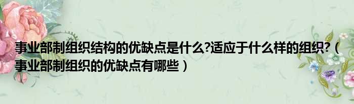 导读 大家好,今天小六子来为大家解答以下的问题,关于事业部制组织结构的优缺点是什么?适应于什么样的组织?,事业部制组织的优缺点有哪些这个很
