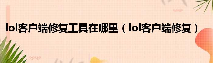 lol客户端修复工具在哪里(lol客户端修复)