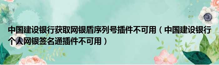 中国建设银行获取网银盾序列号插件不可用(中国建设银行个人网银签名通插件不可用)