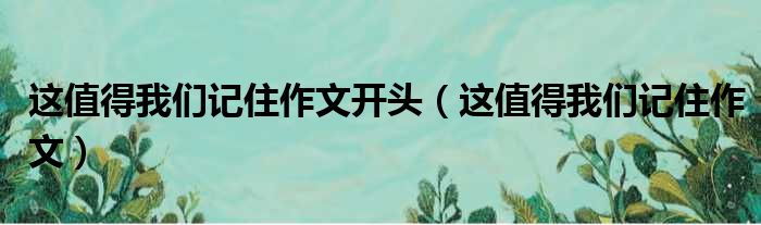 导读 大家好,今天小六子来为大家解答以下的问题,关于这值得我们记住作文开头,这值得我们记住作文这个很多人还不知道,现在让我们一起来看看吧