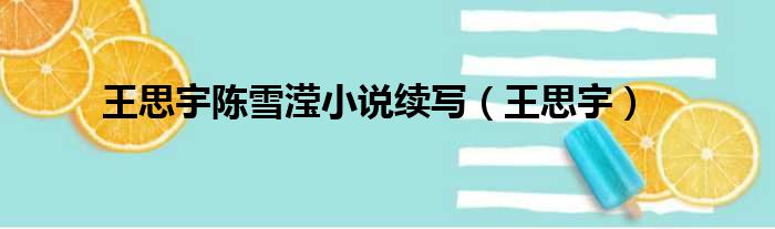 导读 大家好,今天小六子来为大家解答以下的问题,关于王思宇陈雪滢小说续写,王思宇这个很多人还不知道,现在让我们一起来看看吧!1、第一次看到