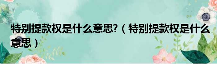 导读 大家好,今天小六子来为大家解答以下的问题,关于特别提款权是什么意思?,特别提款权是什么意思这个很多人还不知道,现在让我们一起来看看吧