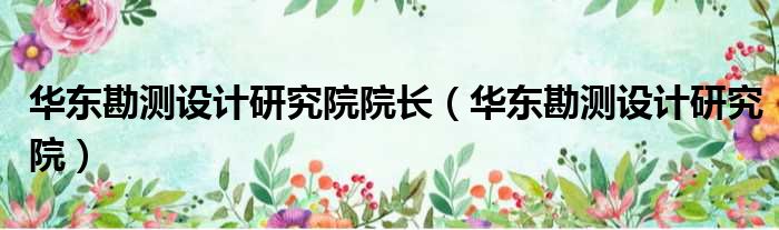 华东勘测设计研究院院长(华东勘测设计研究院)