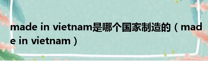 made in vietnam是哪个国家制造的(made in vietnam)