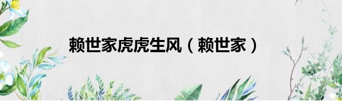 大家好,今天小六子来为大家解答以下的问题,关于赖世家虎虎生风,赖世家这个很多人还不知道,现在让我们一起来看看吧!