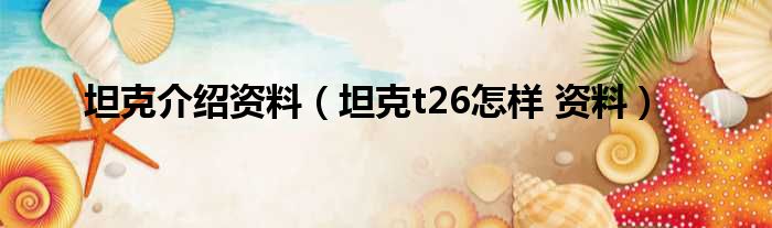 导读 大家好,今天小六子来为大家解答以下的问题,关于坦克介绍资料,坦克t26怎样 资料这个很多人还不知道,现在让我们一起来看看吧!1、坦克世