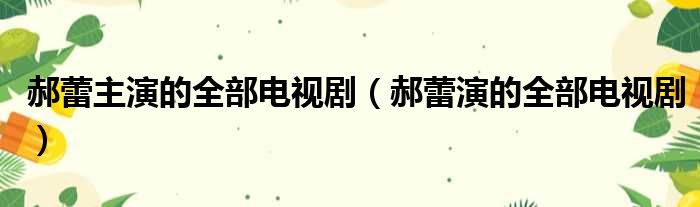 郝蕾主演的全部电视剧(郝蕾演的全部电视剧)